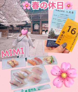 春の素敵な休日🌸 2026/04/08 12:47:25 昨日のお休みは神社にいってきました(●´ー`●)祈祷もしてもらってなんだかとってもスッキリな気持ちヽ(〃∀〃)ノ💓桜も綺麗に咲いてて少し腰かけてお花見もしてきたよ⭐️昨日は気温もちょうど良くて心地よかったなぁ🥰ご飯は大好きな若竹丸のお寿司ヽ(〃∀〃)ノ夜はお風呂にも行ってとっても幸せな一日中でした😊