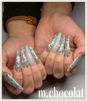 この時期毎年迷うからシルバーのホロでギラギラで薬指は使ったことないオーロラパウダーにしてもらったよ!