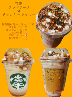 このカスタムだったら追加でシナモンパウダー入れてもらったら更に私好みのチョコチップクッキー味になりそうだなと思ったり!(シナモンを感じるチョコチップクッキーが好きなの。なかなか無いよね🍪)